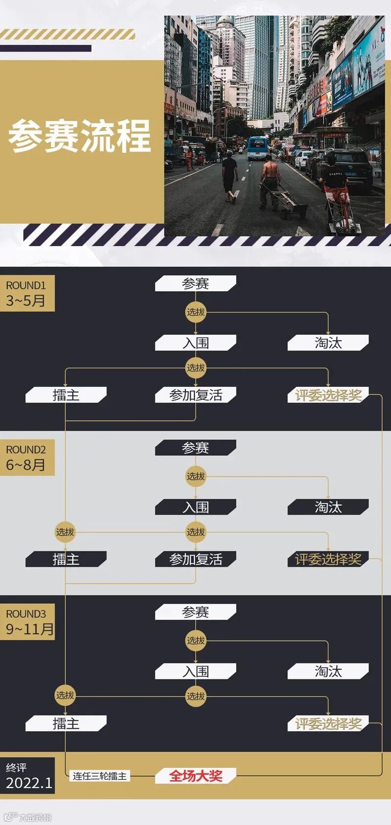 那么如何利用赛制来提升自己的获奖概率呢?首先,参赛作品的质量永远是最有力的通行证;此外,如果大家积极投稿,投稿数量众多,并且踊跃分享,有更多朋友帮你点赞,那么你也有机会通过积分获得街头斗士奖并赢取相应奖品。