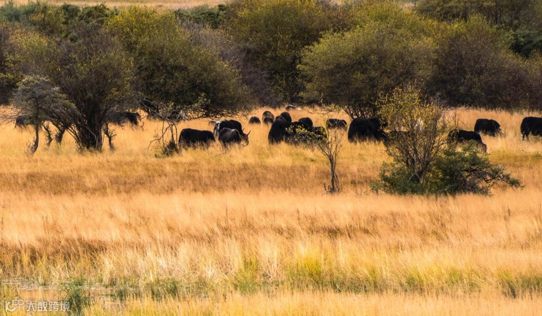 ↑图片拍摄于桑科草原,秋季金色的植被和蓝色的湖水对比鲜明。同时这张照片使用GF100-200mmF5.6 R LM OIS WR以及GF1.4X TC WR增距镜拍摄,原本200mm的焦距再加上1.4倍增距,最终的焦距达到了280mm,中画幅下长焦的压缩感表现的非常棒,同时5轴防抖在280mm焦段进行手持拍摄时给到了很大的帮助,1/100秒的快门速度下,图片放大到100%后画面细节与锐度依旧值得称赞,可以清晰的看到躲在植被中的牛群。