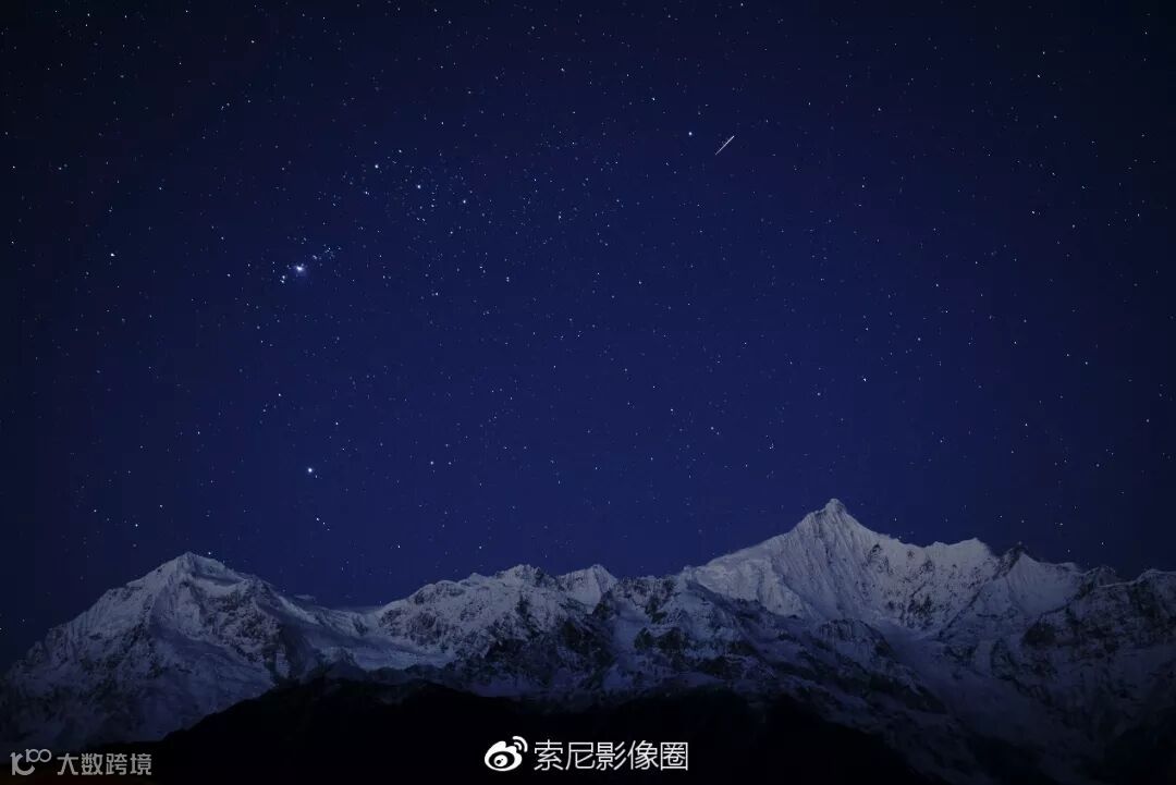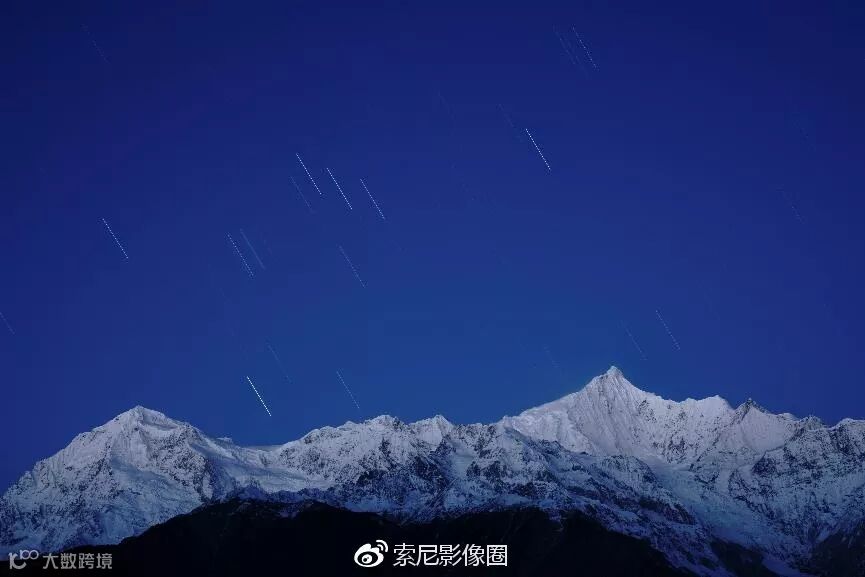 题图那张星轨照片,并不是用堆栈的方式拍成,而是直接长曝7分半钟获得的。画面依然干净清晰,月色下的雪山锐度细节都非常令人印象深刻。