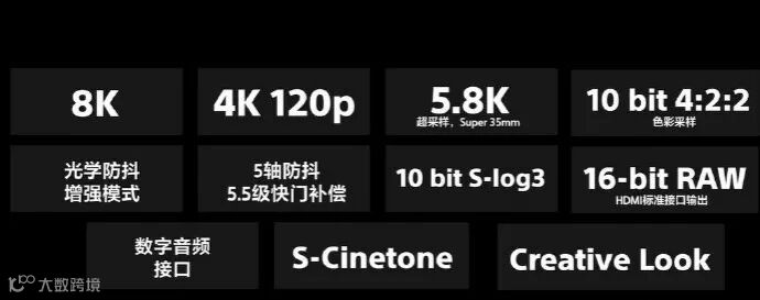 如果是比较喜欢录视频的用户,可以使用传感器的整个宽度,以30fps的速度在内部以8fps拍摄8K 10位4:2:0视频。