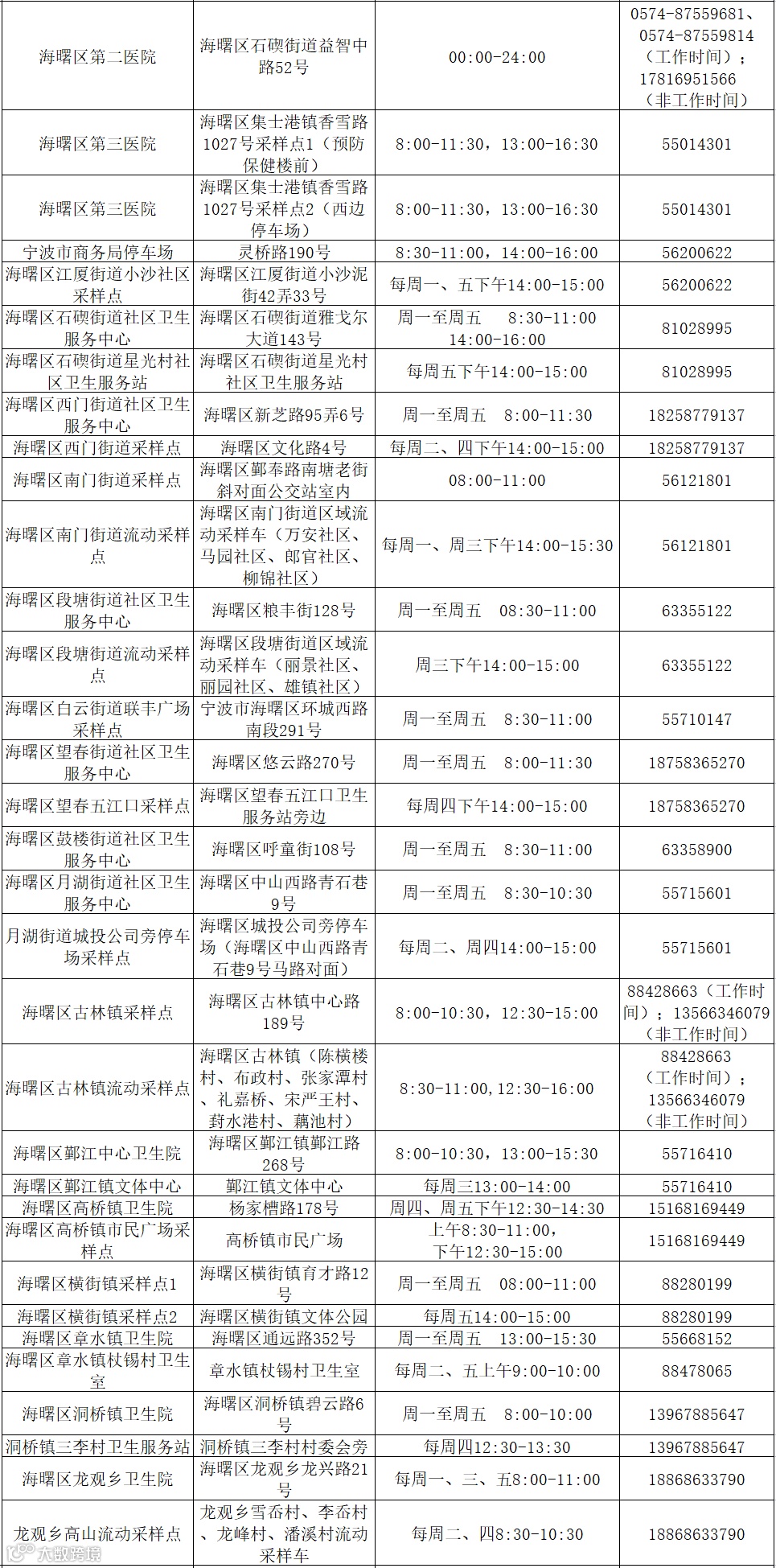附:最新核酸采样点信息(随时更新,以现场公告为准)