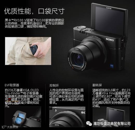 说到卡片机这里就不得不提索尼了,索尼黑卡绝对是卡片机中的王者,比如最新款的索尼黑卡RX100M5有着“速度大师”之称,有着非常出色的表现。
