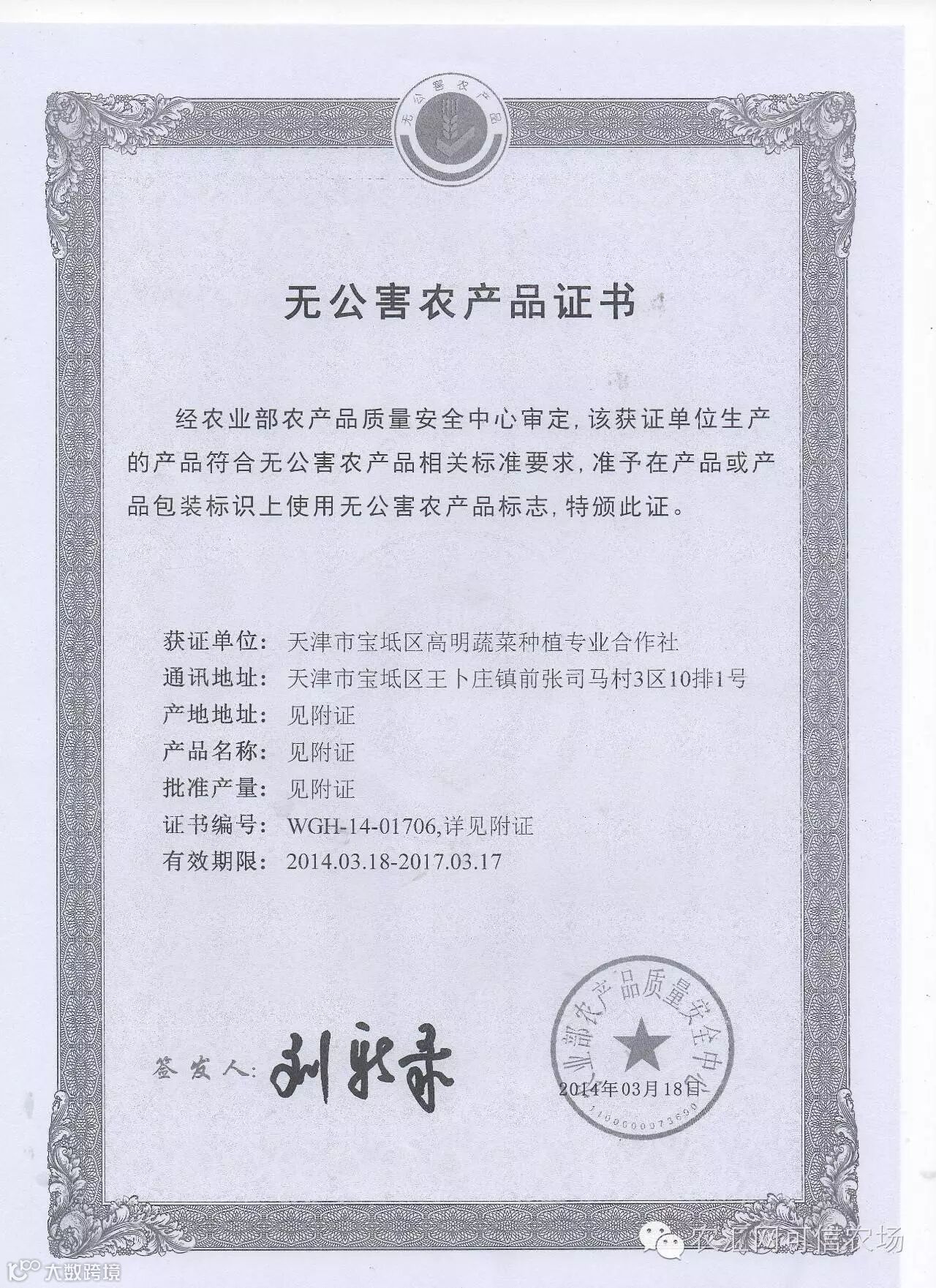 天津市宝坻区高明蔬菜种植专业合作社