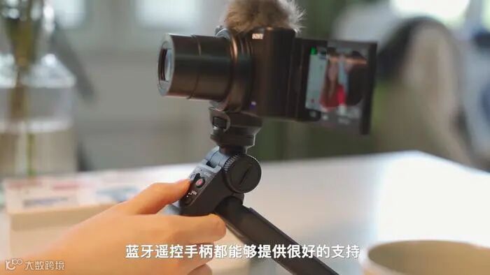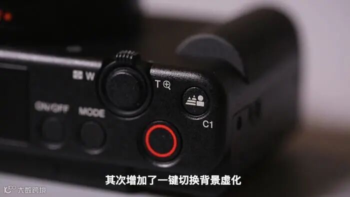 与ZV-1配套的(需购买手柄套装)还有一支蓝牙手柄,它可以实现拍照,录制,变焦等功能,C1按键可以自定义功能,默认是一键背景虚化。
