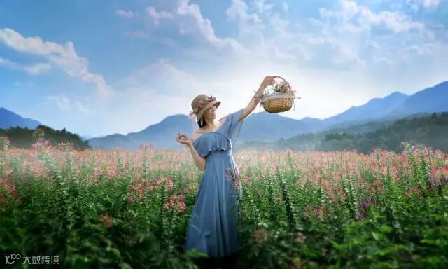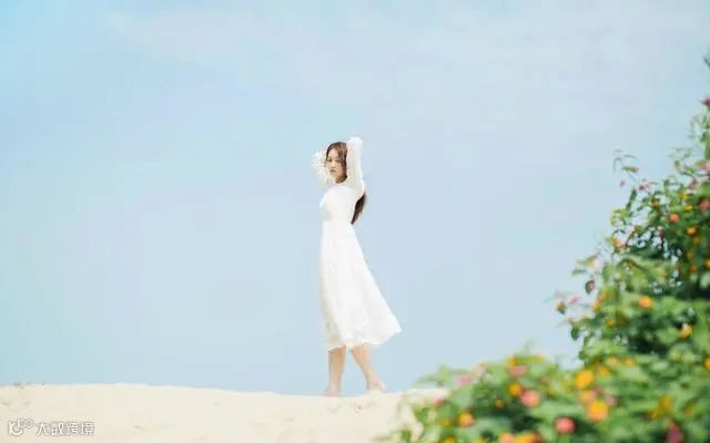 在户外拍摄人像时,首先要寻找干净简洁的场景。像在山野的花丛中、草地上,这里就是最常见的拍摄场地,很多小清新题材的照片都会优先考虑这里。