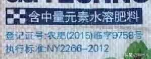 上述几款肥料,在包装袋上印有执行标准【NY1107 - 2009 (大量元素水溶肥料);执行标准:NY2266 - 2012 (中量元素水溶肥料)】的字样,说明是国内厂家生产的肥料,而包装袋上却印有美国、俄罗斯等国家字样,误导消费者以为是进口肥料。