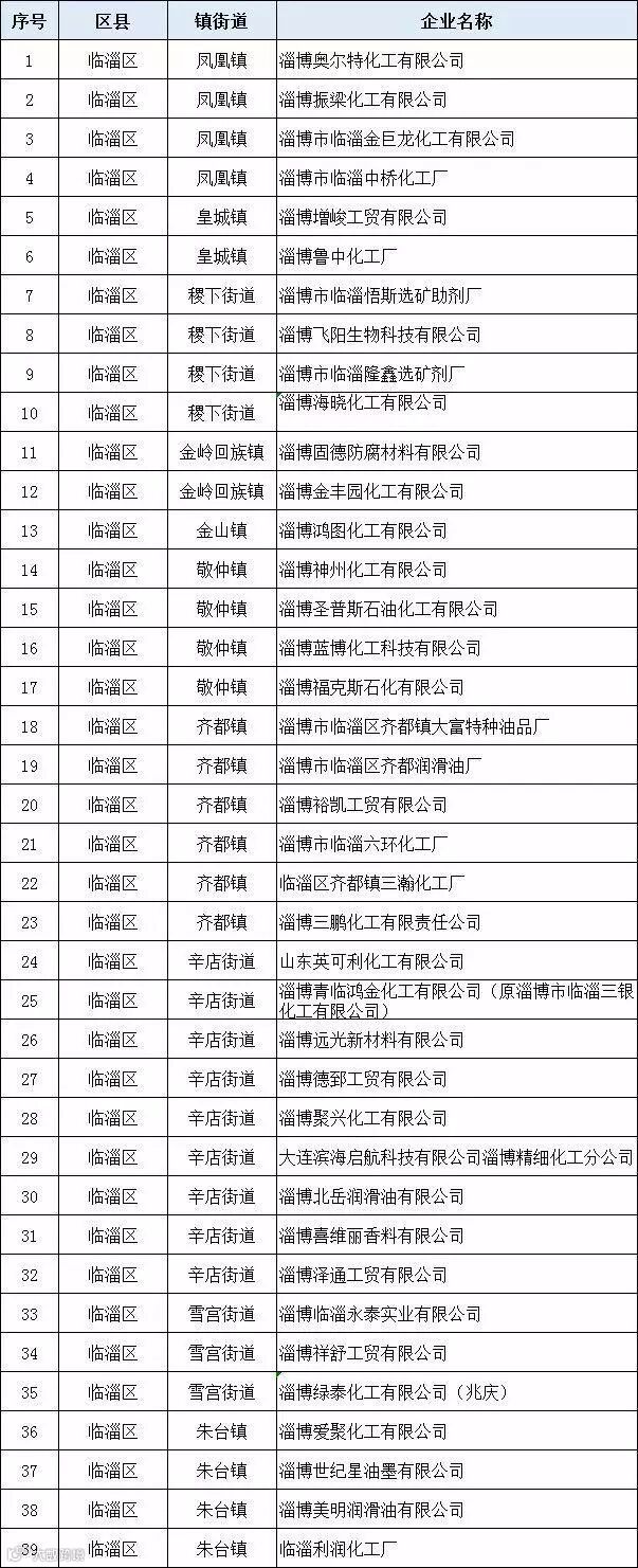 ·山东省:化工大省山东已推进化工产业转型集聚发展,并对全省原有的199家化工园区进行清理整顿。截至4月30日,已有济南、东营、枣庄、临沂、泰安、滨州、威海、烟台等8个地市公示了拟关停化工企业,总数达到了568家。各个区“关闭淘汰一批”化工生产企业名单分别如下: