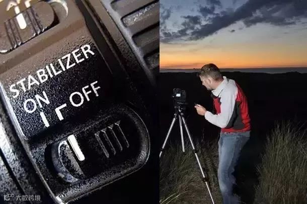 1、慢门拍摄,应关闭镜头防抖
