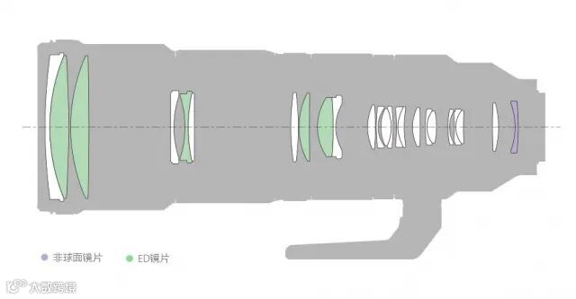 镜头采用了17组24片的光学设计结构,其中包含了5片ED低色散镜片以及1片非球面镜片。既能降低色散的发生,通过非球面还能够校正相差,提高成像锐度。