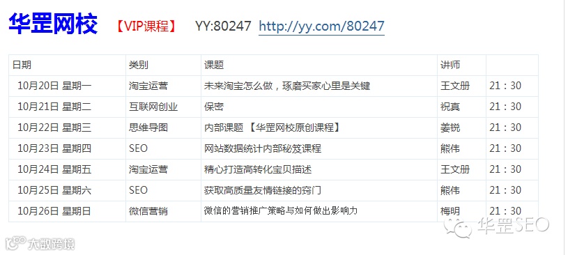 2、华罡网校vip课程表(10.20-10.26)