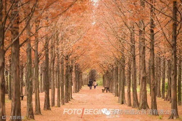 但若果你在拍摄时发现远的物件太小了,很难看到,这时可以使用长焦镜头如 200mm、300mm 等拍摄,相片中远的东西会变得跟近的东西差不多大(或差距变小),令前后景好像「压缩」在一起似的,最适合拍摄长长道路上两旁的黄叶,或是布满红叶的山岭环境!