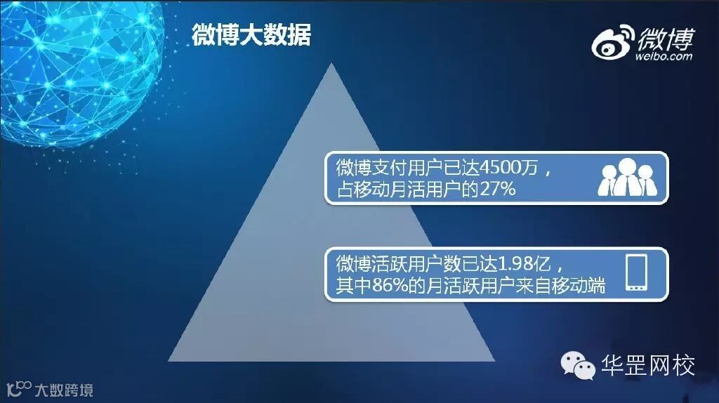 1.微博支付的用户量已经到了4500万,占月活跃用户的27%,这4500万用户绝大多数都是具有购买能力,并且有购买习惯的用户。