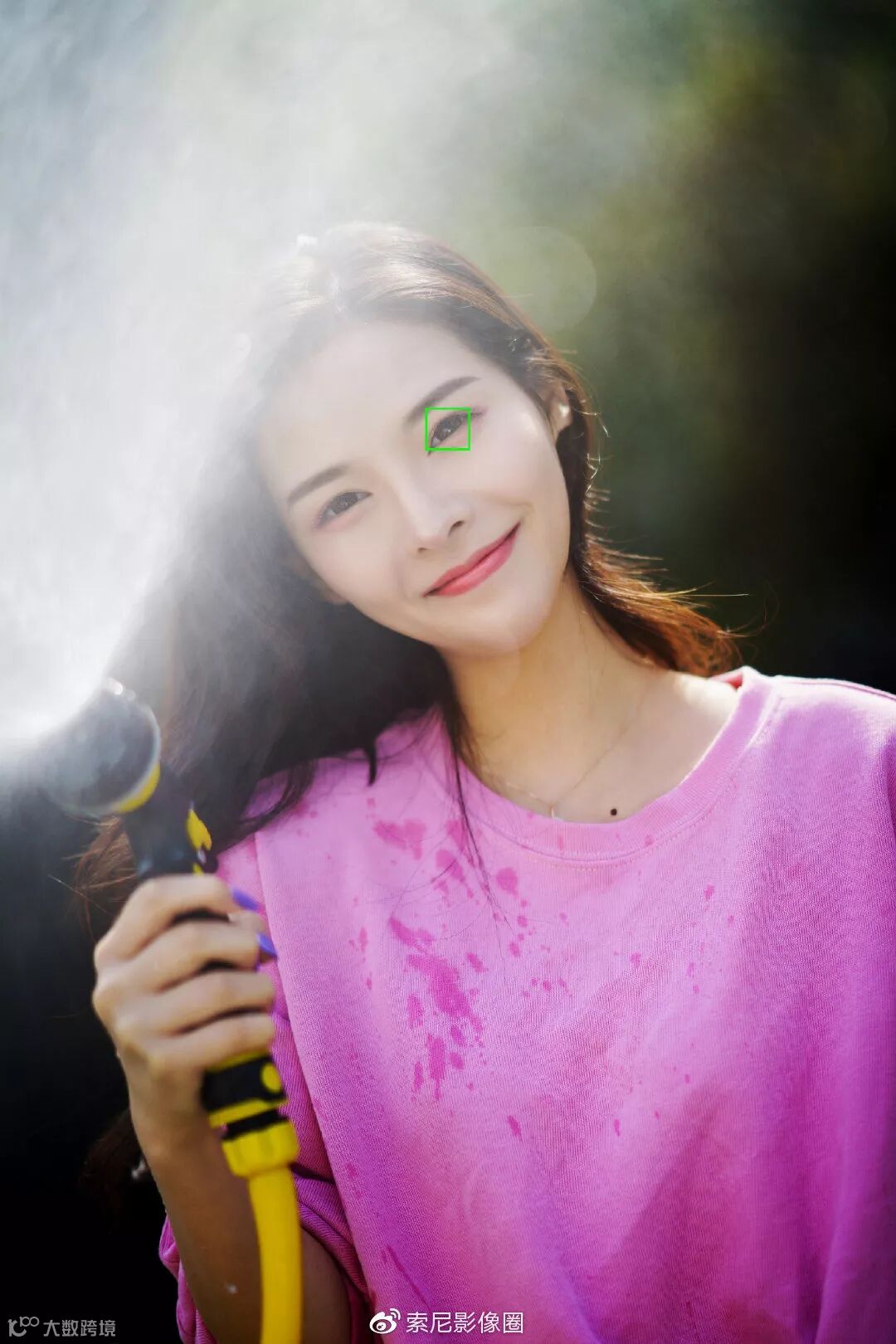 Alpha 7R IV拥有索尼目前最先进的”实时眼部对焦“技术。什么意思呢?就是当你抬起相机对着人的时候,无须任何操作,相机会自动寻着人眼去。在你半按快门时,对焦点会牢牢的锁定眼睛,片刻不离。在算法上,Alpha 7R IV的识别能力也更强,特别是当一些干扰因素出现时,Alpha 7R IV也能准确识别眼睛。比如下面这张照片拍摄时,我让模特的喷头对着我镜头扫过去。在一片水雾的干扰下,Alpha 7R IV依然可以牢牢地抓住眼睛。
