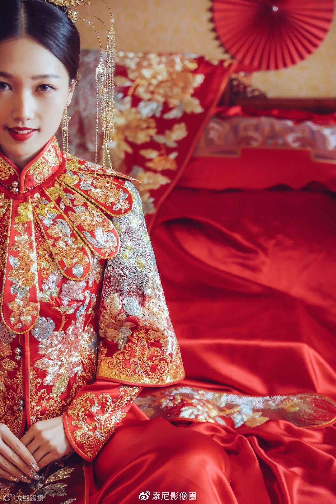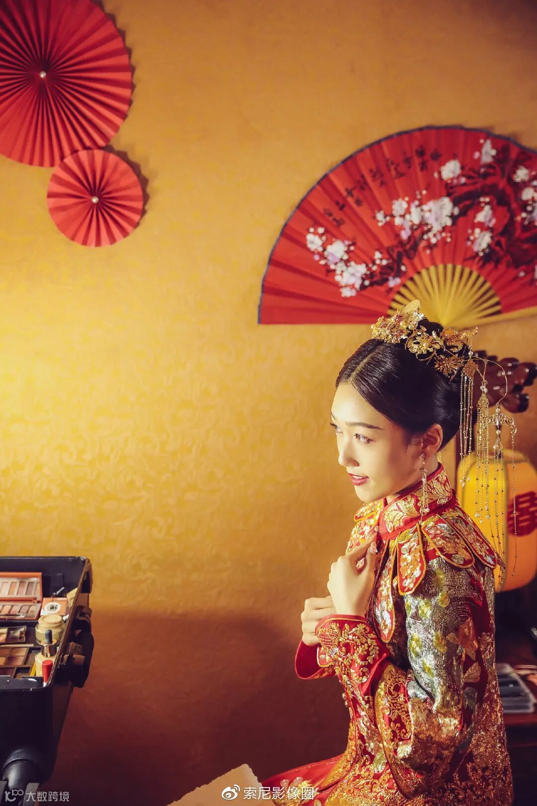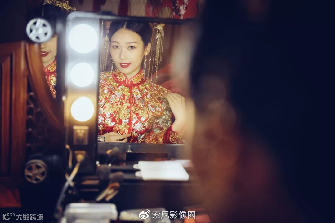 当换完了秀禾后,对着镜子整理妆容时,对眼神的捕捉。