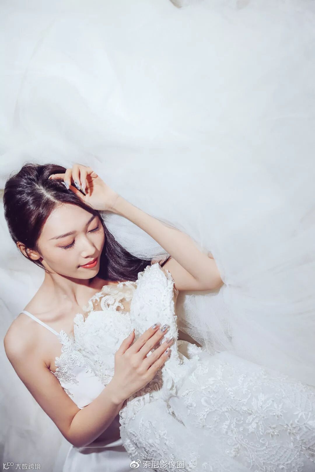 和婚纱之间的安静交流,需要调整手臂手指的摆姿,展现美感。