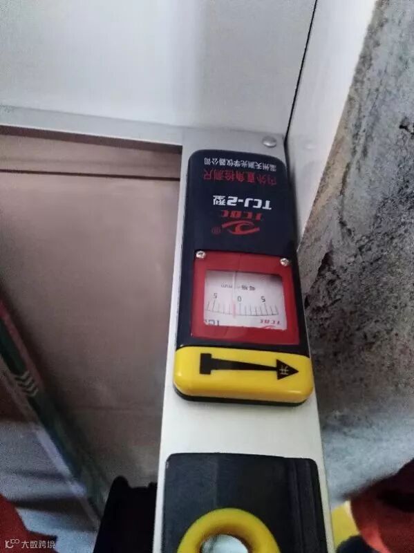 墙面阴阳角检测,使用200*200直角检测尺检测,完美贴合的角度,误差仅在1㎜。