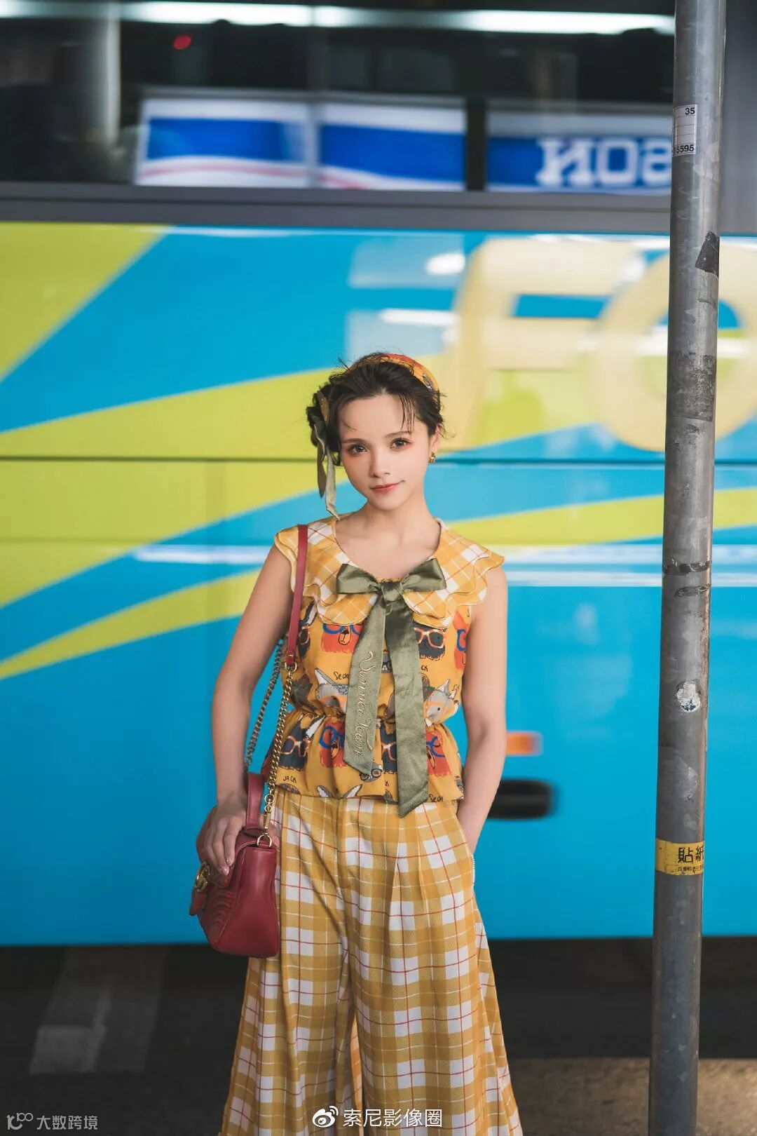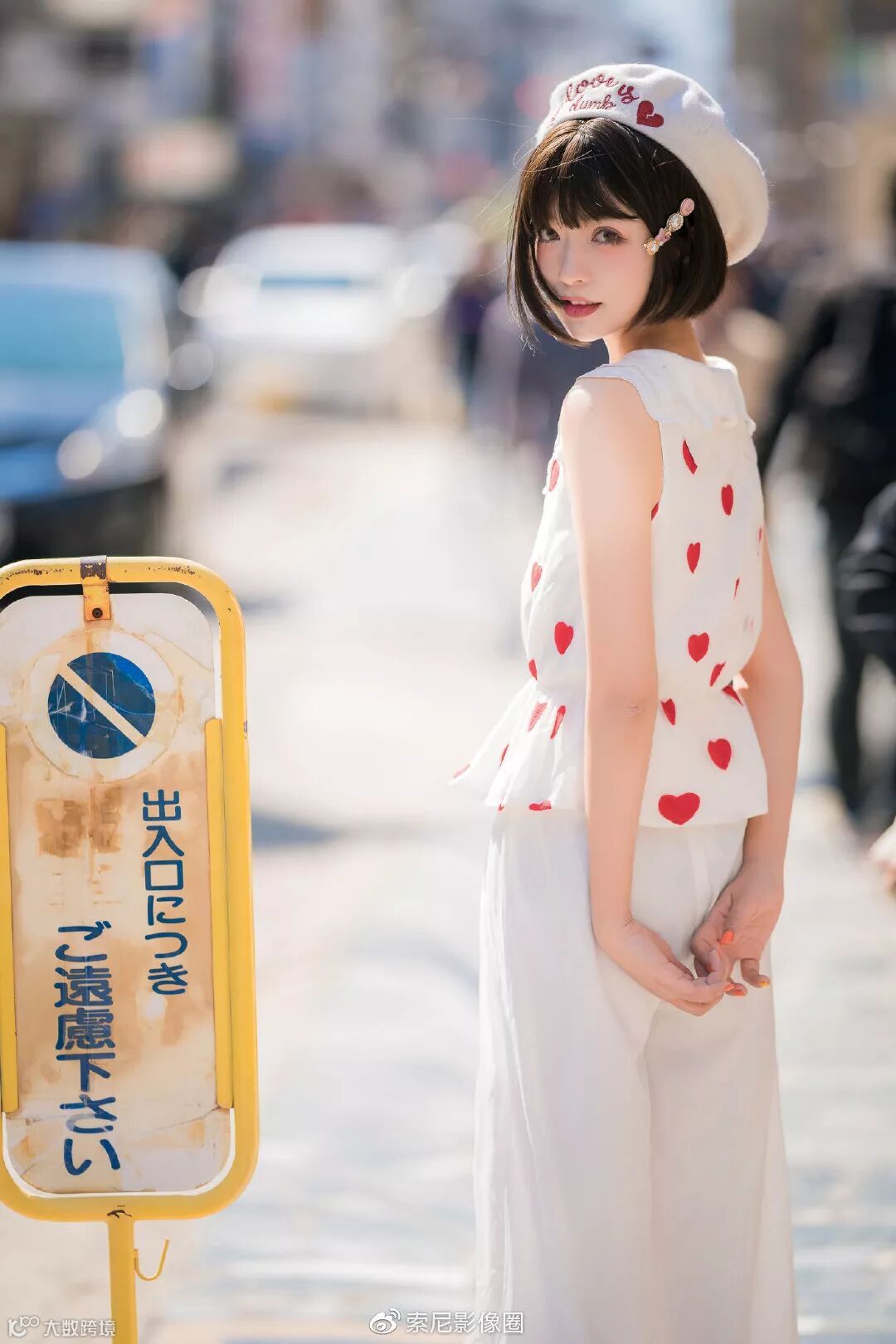 接着我们换用FE50mm F1.4 ZA进行拍摄,街拍时需要街头的各种元素都可以充分运用起来,一面彩色的墙,颜色搭配合适的海报,特别的光影,都可以充分加以利用。尽量使模特处于舒适自然的节奏中,就能拍摄出自然而动感的照片。至于相机的选择,应当尽量选择快速操控无负担的相机,减少需要手工调整的环境,这样才能达到最快的反应速度。