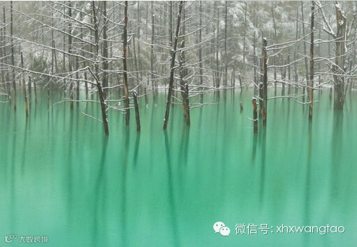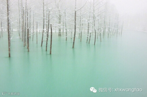 这组作品来自摄影师Kent Shiraishi,摄于美瑛青池,位于美瑛町的东南部、美瑛川左岸海拔约500米附近,水中多含铝酸粒子,当阳光照在池面上,光线变化水的颜色也会随之改变。