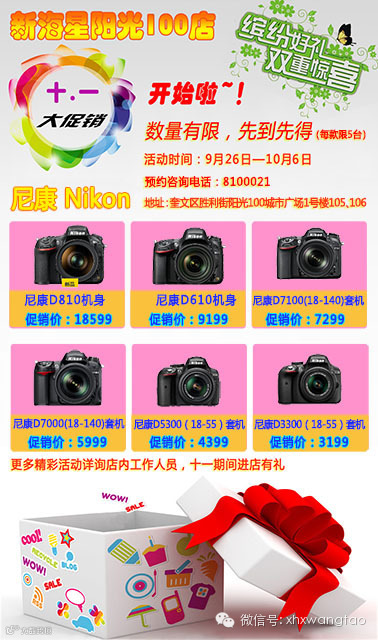 新海星阳光100店十一促销中(尼康)