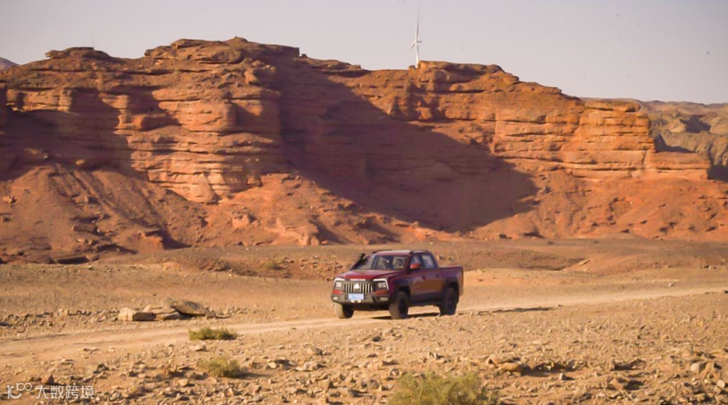 随着红色的雅丹地貌在窗外迅速迭换,我们也感受到中国重汽皮卡配备的前麦弗逊双叉臂独立悬架+后多连杆整体桥悬架的用意所在。作为高级别车型通用的悬架配置,这套悬架配置在起伏颠簸路面上彰显了强大的一面。