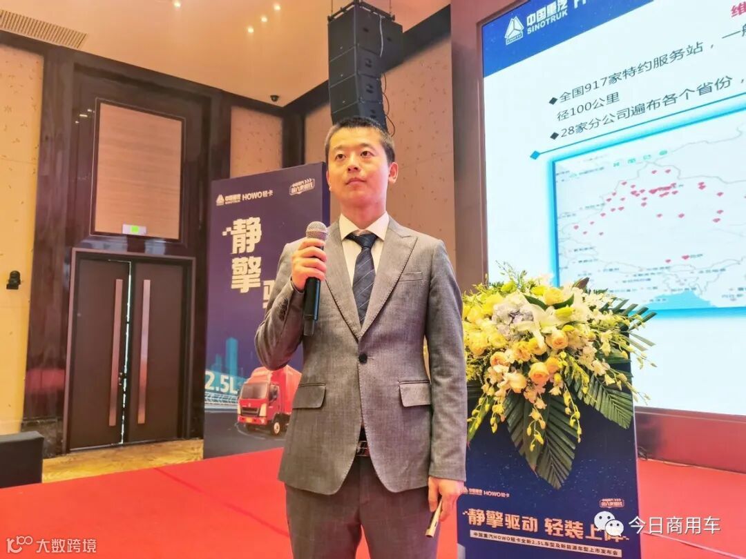 经理陈龙登台致辞,让大家对HOWO轻卡全新2.5L车型及新能源车型的研发背景与市场定位有了初步的了解。无论是为应对政策变化与市场发展趋势,专为高效城配物流打造的HOWO轻卡全新2.5L车型,还是为积极响应国家环保理念,强势推出的HOWO轻卡新能源车型,都兼具着“更轻、更擎、更智、更静、更省”的核心亮点,得到了广大卡友的认可!