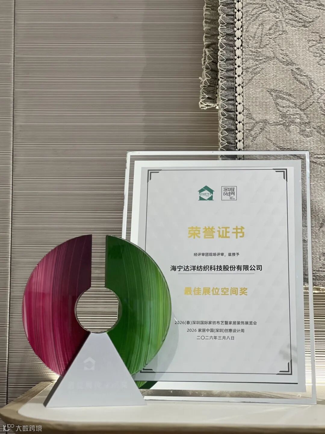 喜报|达洋纺织斩获2026(春)深圳家纺展「最佳展位空间奖」