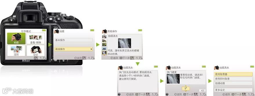 即使您之前从未使用过数码单反相机,也能轻松操控D3500。相机内置的“引导模式”专为帮助摄影初学者掌握相机操作而设计,而且在此过程中还能学到很多有关数码单反相机的摄影知识。