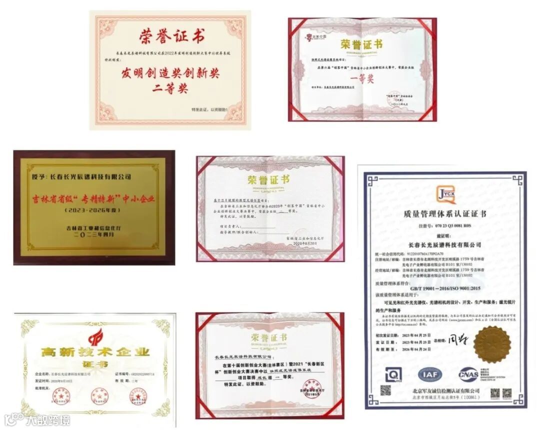 近年来,长光辰谱加大研发力度,加强研发平台建设,科技创新成果取得了丰硕成果,公司先后获得了获得国家级高新技术企业、“IS09001质量管理体系认证”等荣誉资质、吉林省“专精特新”中小企业、“2021年度创客中国•吉林省中小企业创新创业大赛一等奖”、 2022年度发明创造奖创新奖二等奖、全国电子信息行业“优秀企业”、第十届创业创新大赛吉林赛区一等奖等荣誉资质。