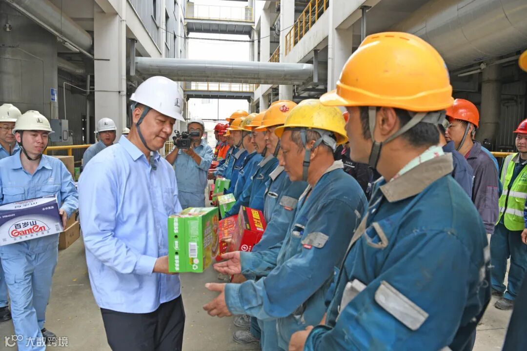 在高纤部E03前纺区域溶剂回收装置,蒋元峰一行为正在现场检修的干部员工送上慰问品,他说,在现场看见大家为了完成生产任务,战高温、斗酷暑,挥汗如雨、拼搏奉献,展现出仪化劳动者的精神风貌。扬州市总工会每年都会组织开展“冬送温暖”“夏送清凉”慰问活动,今年夏天来仪化,也是为了表达我们对仪化干部员工的关心。同时,希望新闻单位将镜头对准工作在一线、奋战在一线的劳动者,大力宣传大家展现出来的艰苦奋斗、团结拼搏和劳动工匠精神,弘扬社会正能量。
