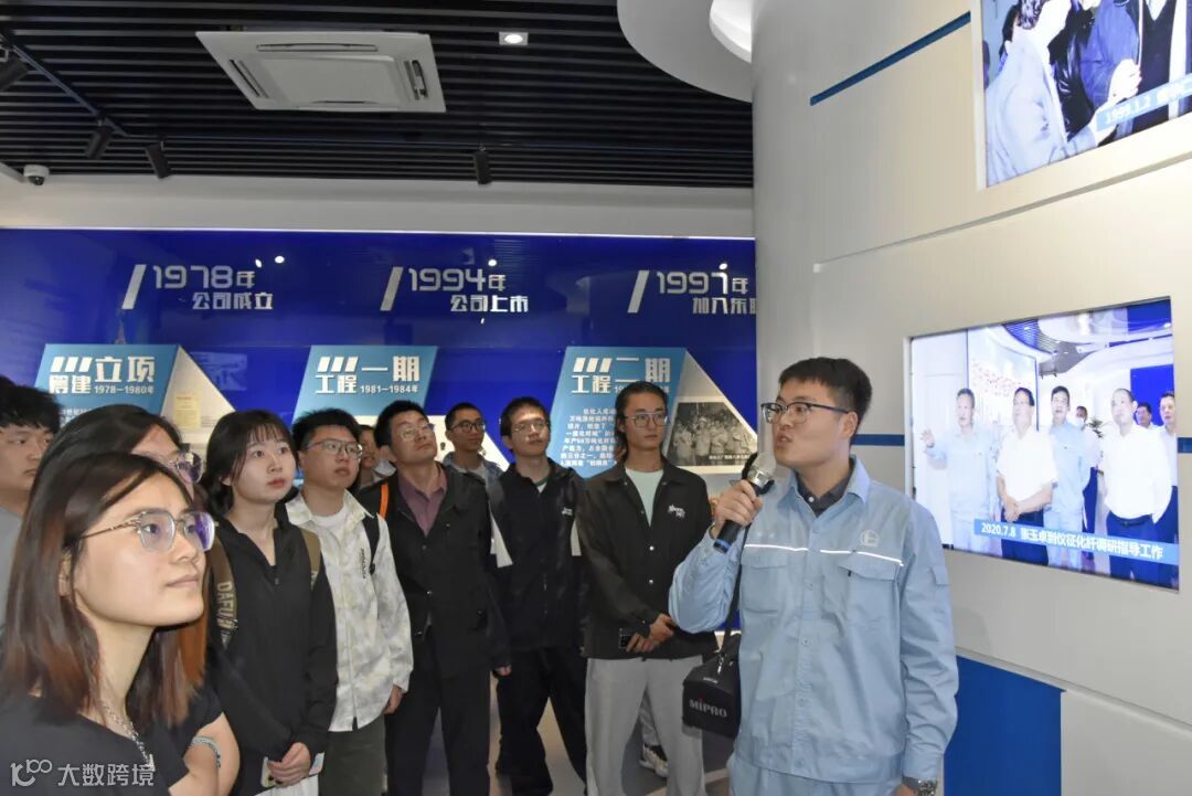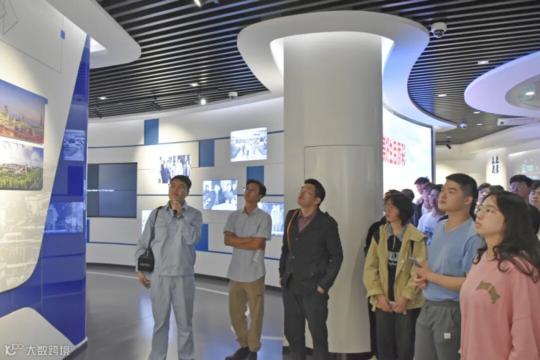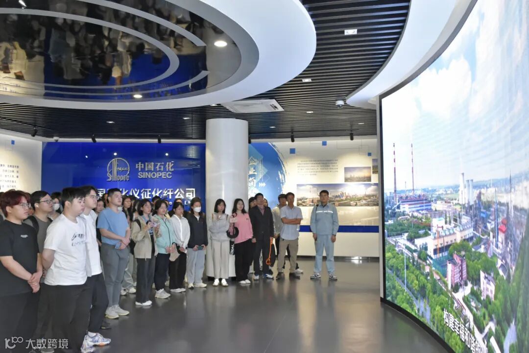 接着,讲解员介绍了公司化工、聚酯切片、涤纶短纤、涤纶中空、瓶片、特种纤维、PBT、聚酯薄膜和聚丙烯织物等八个业务板块方面的概况、产品实物及市场应用等情况,并不时与同学们进行互动交流,解答他们咨询的问题。