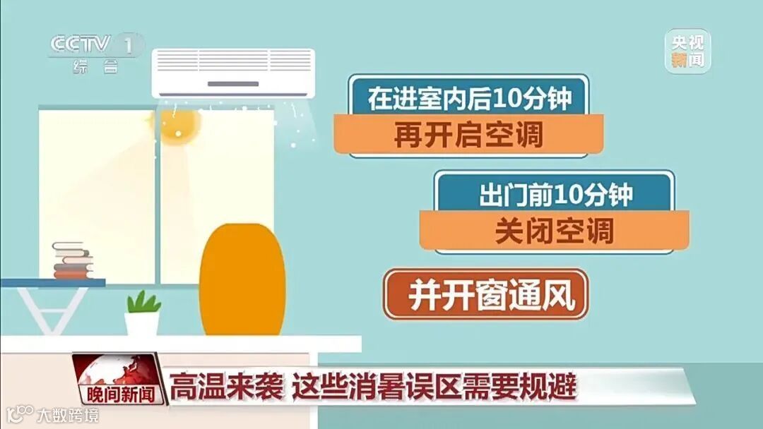 正确做法是:室内外温度差,以不高于10℃为宜。在进室内后10分钟再开启空调,出门前10分钟关闭空调,并开窗通风。