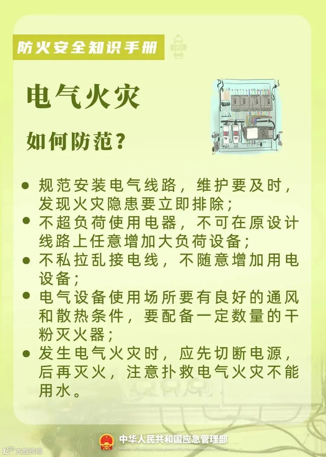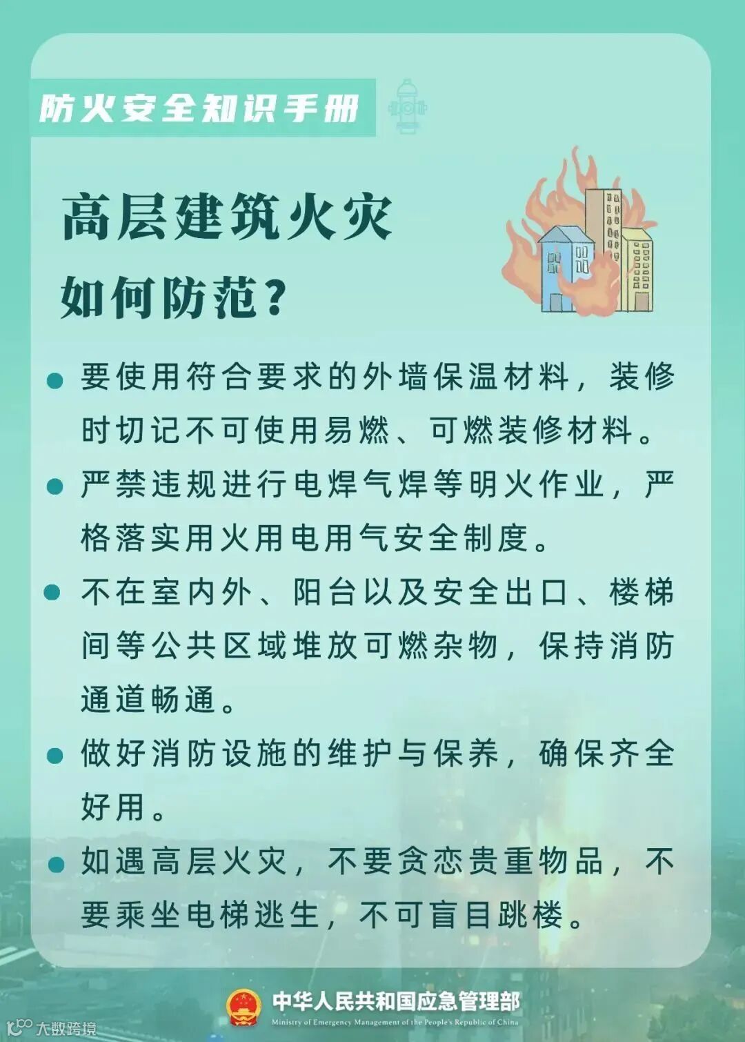 学会使用消防器材:应该学会使用常见的消防器材,如灭火器、消火栓等,以便在紧急情况下能够及时扑灭火源。