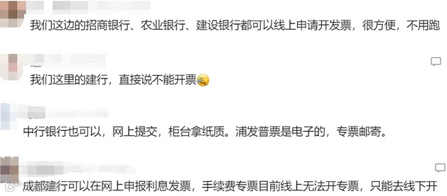 关于其他银行现在是不是能在网站自主申请银行手续费发票,网友反映也不太一样: