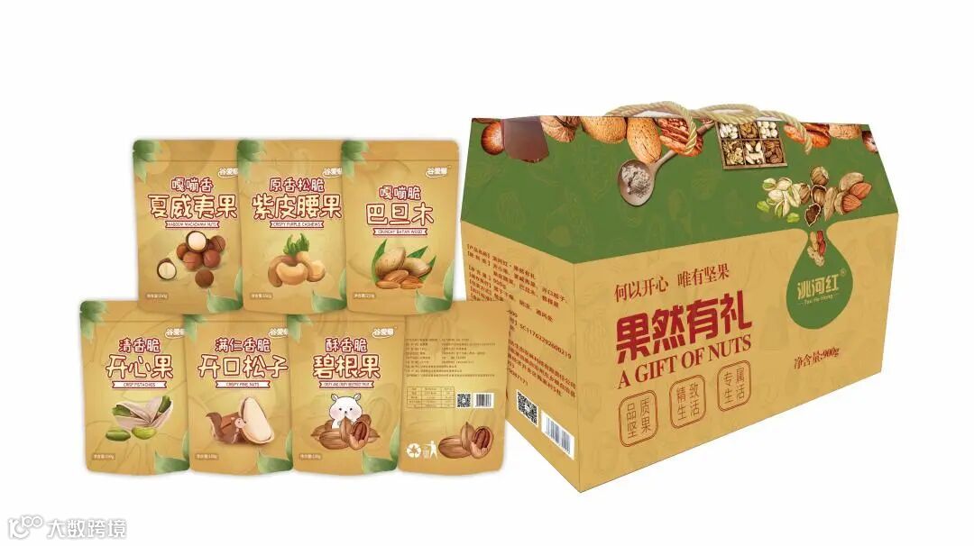 洮河红果然有礼干果礼盒:开心果150g、紫皮腰果 150g、夏威夷果 150g、巴达木 150g、碧根果 150g、开口 松子 150g