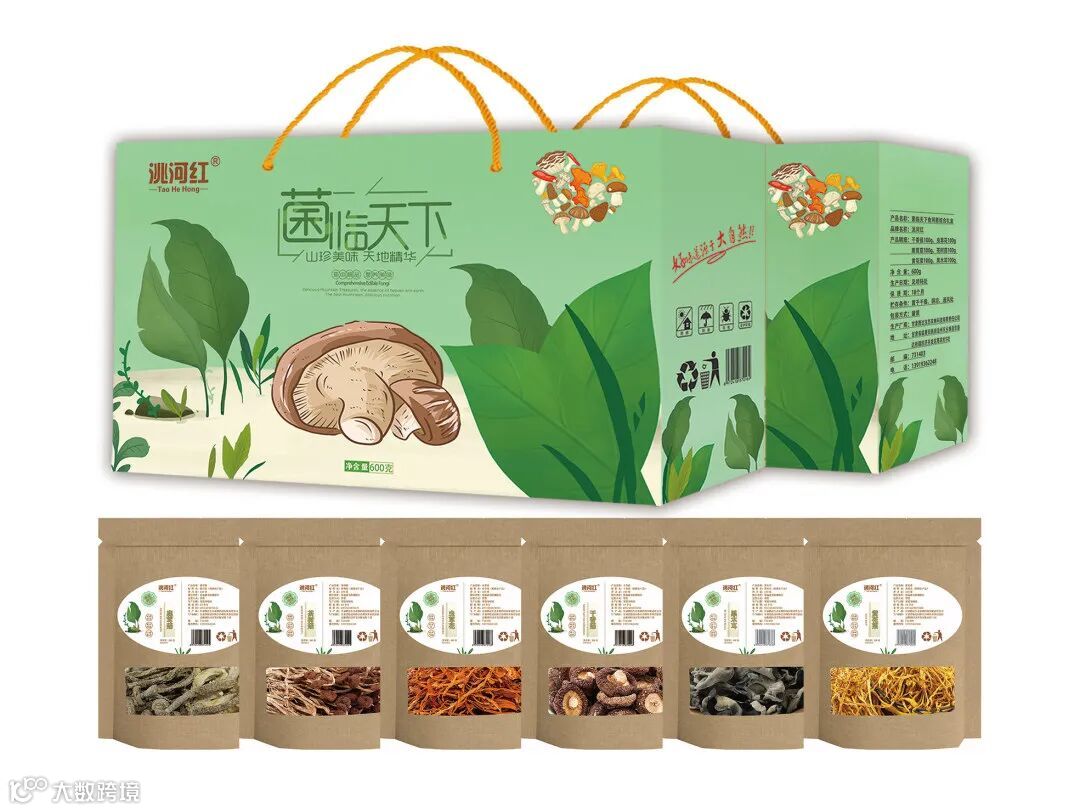 洮河红菌临天下礼盒:茶树菇100g、虫草花100g、干香菇100g、黑木耳100g、黄花菜100g、鹿茸菌100g
