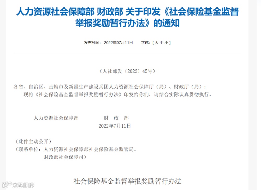 在今年1月1日,人社部和财政部共同发布了《社会保险基金监督举报奖励暂行办法》,在其中,针对多种社保违规违法行为,制定了奖励规则,最高可以奖励人民币10万元。