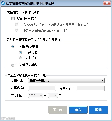 注意:如果购买方已经认证,需要购买方开具红字发票信息表选择“购买方申请”,如未认证,销售方开具红字发票信息表选择“销售方申请”,并且需要输入蓝字发票号码、代码。