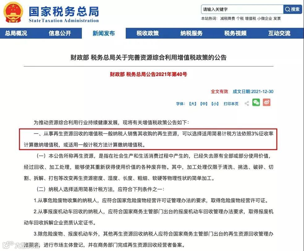 3、增值税一般纳税人销售自产的资源综合利用产品和提供资源综合利用劳务,可享受增值税即征即退政策。