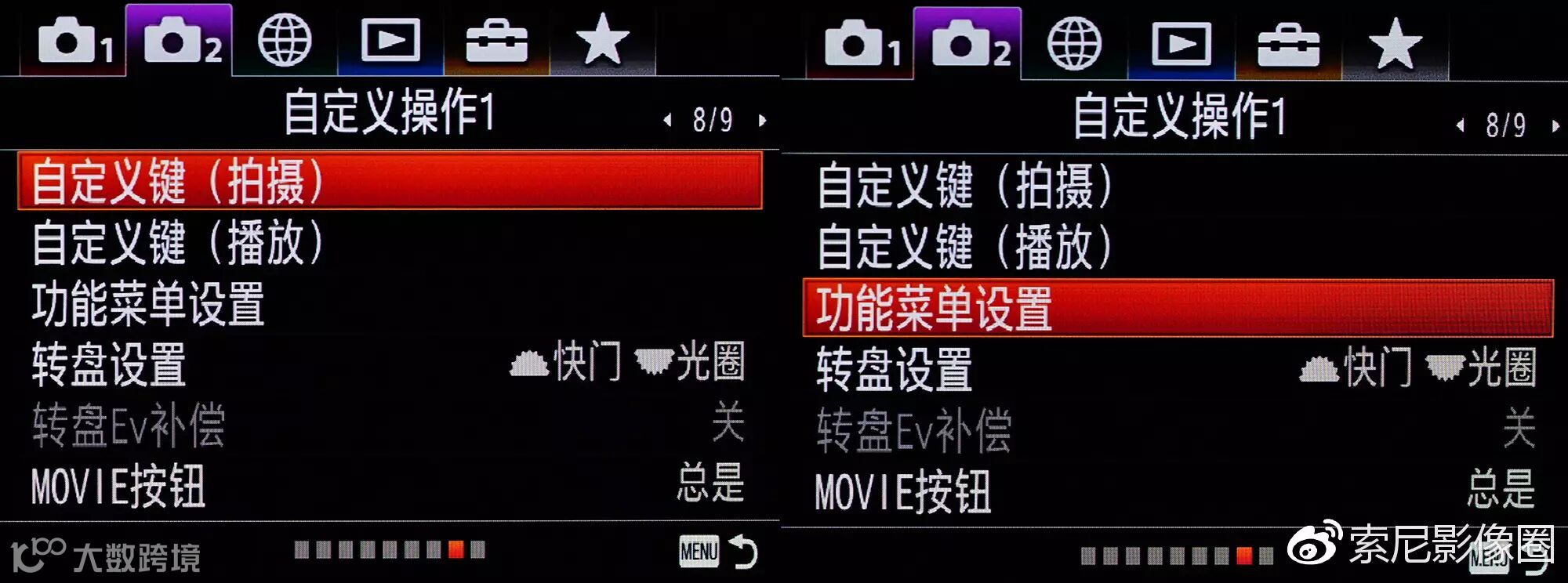 光圈、快门独立波轮,人人都有。那么ISO呢?在索尼A7系列、A9上都拥有三个独立的波轮,可以分别控制光圈、快门、ISO。但是想要后背转盘直接控制ISO的话,还需要一点小小的设置。