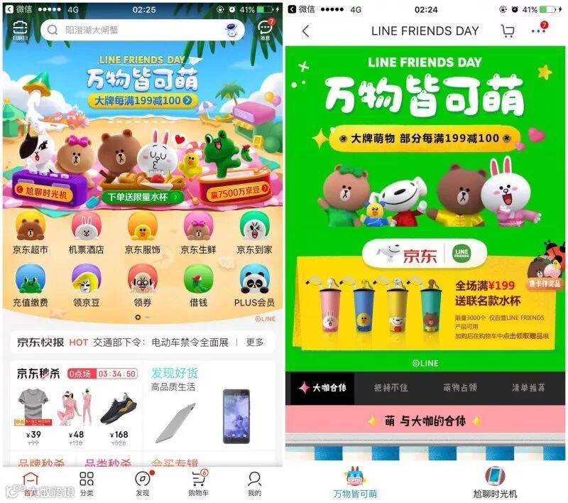 后期一条LINE FRIENDS和京东狗携手同游的视频,更是萌爆全城!