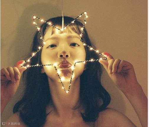 也可以利用各种形状的特殊道具,如环形灯,星星灯拍出创意照片: