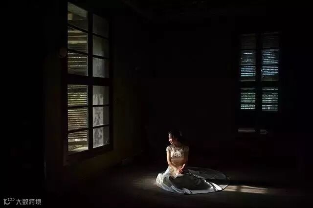 在建筑物的遮挡下只“露出”一点点的侧光光源,也近似于窄光源,可以创造出众的明暗关系。模特位置的选择,至关重要。