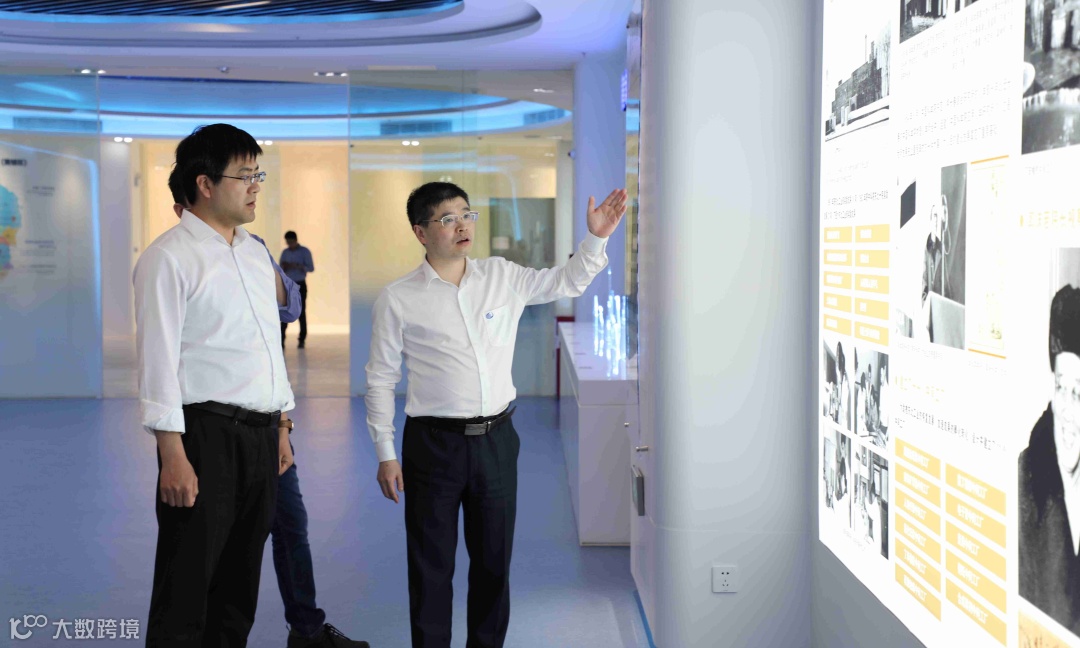 杨小牛院长带领王鸿鑫一行参观了黄埔材料院的科技展馆,向交流团介绍了我院与航空器件有关的特色科研项目,特别是航空轮胎大科学装置的建设意义和重要功能。