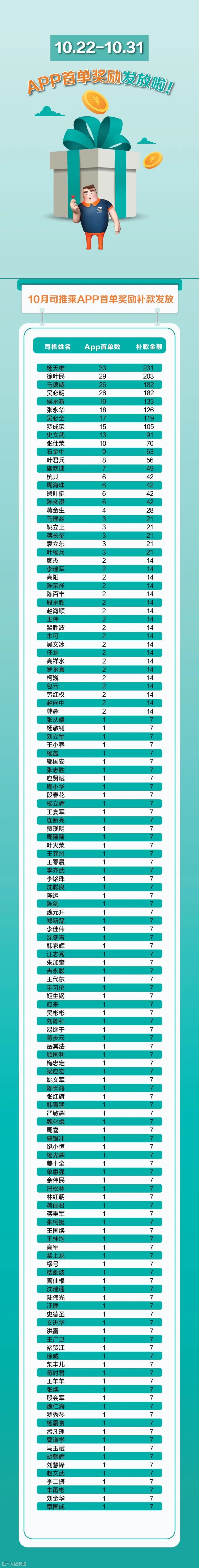 司推乘 | 十月App首单奖励发放啦!