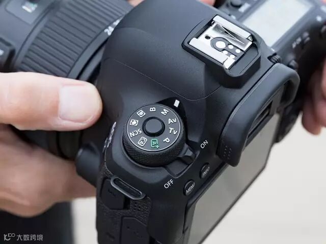 30多年来,拥有PASM模式、自动曝光、全自动、自定义等模式的曝光模式转盘一直都是佳能非专业级单反相机的一个显著特征。 6D Mark II的开关键就在这个模式转盘的下方。