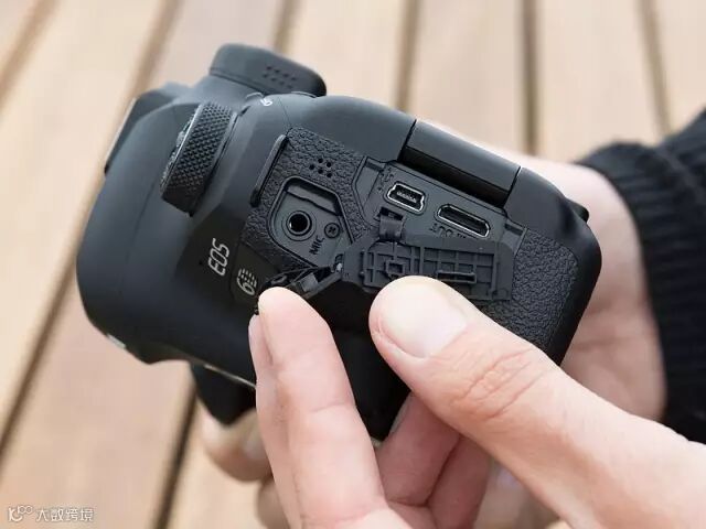 在6D Mark II的机身一侧,我们能够找到HDMI、USB I/O以及一个麦克风接口。