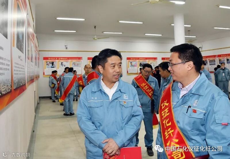 在公司劳动模范、短纤部二装置主任技师王刚的展板前,万涛亲切询问了王刚的具体工作情况,对他被职工誉为现场异常工况处置“110”这个称号大加赞赏,称赞他管理装置有办法。同时,他对短纤部负责人和王刚提出新的希望:“二装置要组织职工用心钻研,进一步提高有光丝的产品质量,提升用户满意度,进一步提升仪化品牌形象。”