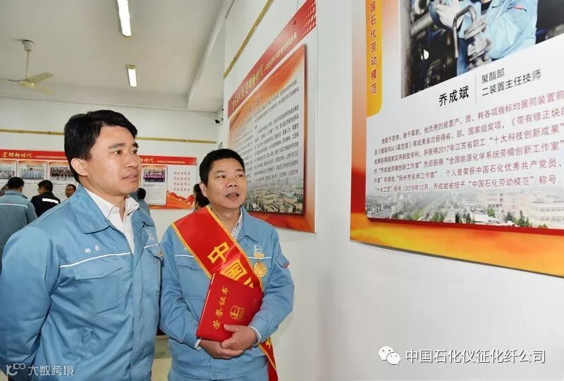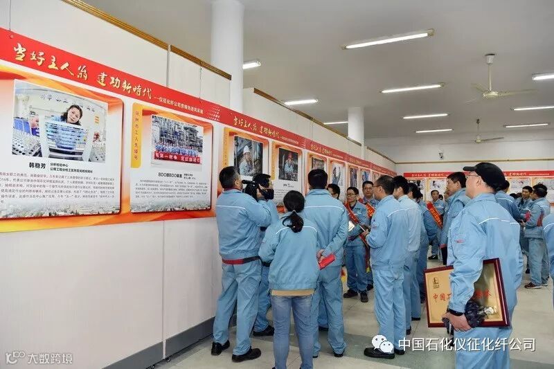 劳模先进是仪化最美员工的代表,是仪化企业精神最典型的写照。4月29日上午,2018年度劳模先进表彰大会结束后,公司在工人文化宫举行了“仪征化纤劳模先进风采展”开展仪式。公司领导万涛、李建平、陈达、杨勇、毛绪国和公司相关部门、各单位党政主要负责人、受表彰的先进个人和先进集体代表一起观看了展览。