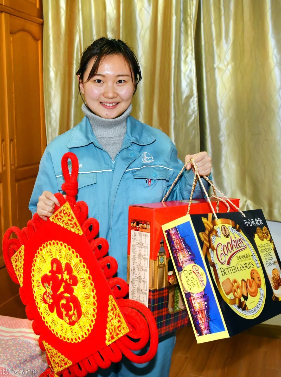 分检中心的孙明明是一名2018年新入职的青年大学生,她下班刚刚吃过晚饭回到公寓,对公司领导上门看望她,并给她送上新年礼包感到非常高兴。