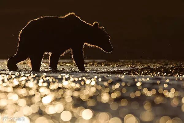 摄影师Marsel Van Oosten拍摄这张熊的肖像照。时间是日落时分,金黄色的逆光勾勒出熊的轮廓,而大片的黑色营造出戏剧张力,是一张富有意味的照片。